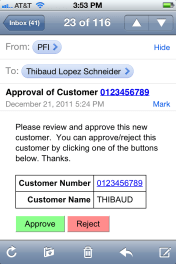 Here is a video that illustrates we can use the mailbox of mobile phones to take action in the Inbasket of ProcessFlow Integrator (PFI). The video is a working demo for the BlackBerry and dates from September 2009, but the concept is still valid today and could apply to iPhones and Android devices as well.