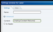 Finally, we invoke our constants from the XAML code with the binding {mashup:Constant constant}. In this example I invoke the constant Welcome in a Label: