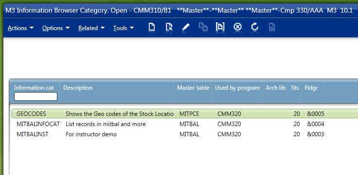 - First, I create a new Information Browser Category in CMM310, GEOCODES in this example: