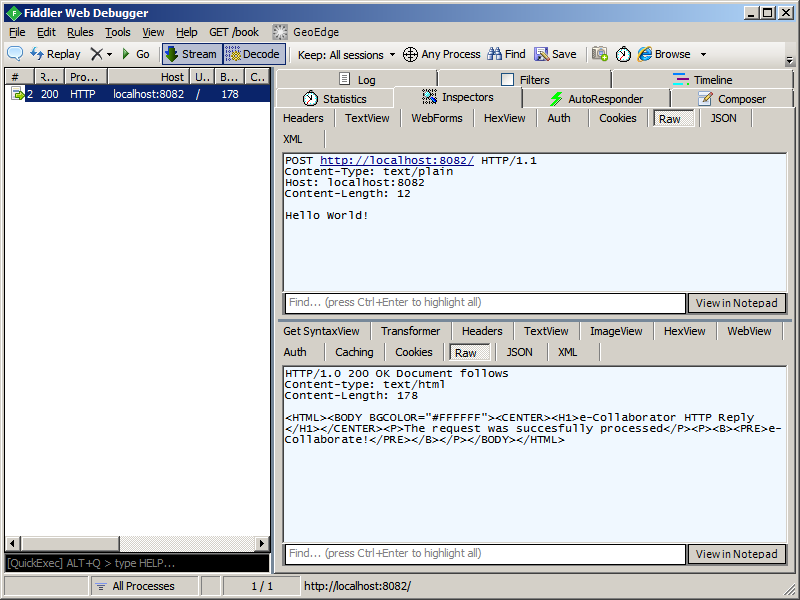 3. In return, MEC sends the hard-coded response “HTTP 200 OK […] e-Collaborator HTTP Reply […] The request was successfully processed”: