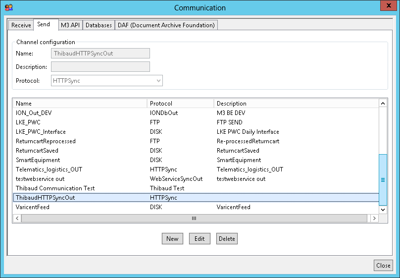 - In the Send tab, create a new outbound channel with protocol HTTPSync (it means HTTPSyncOut):