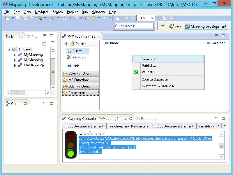- Right-click in the mapping again, select Generate, select the server location, and click Finish: