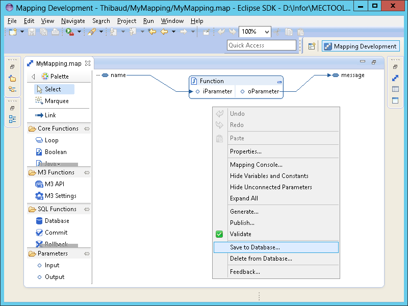 - Right-click in the mapping, select Save to Database, select the mapping database location, and click Finish: