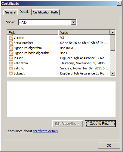 5. Export the certificate to a file, e.g. example.cer: