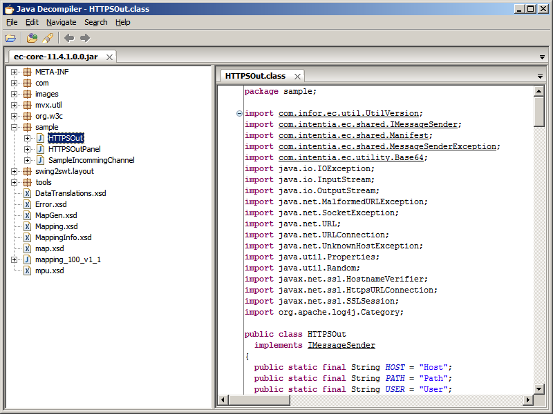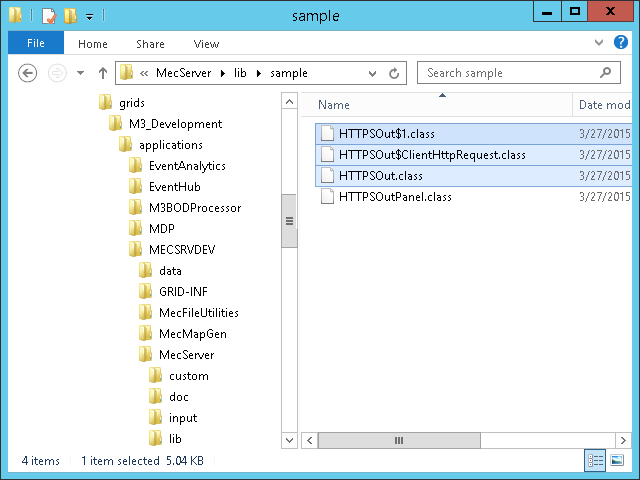 The MEC Java library ec-core-x.y.z.jar includes the Java classes sample.HTTPSOut and sample.HTTPSOutPanel: