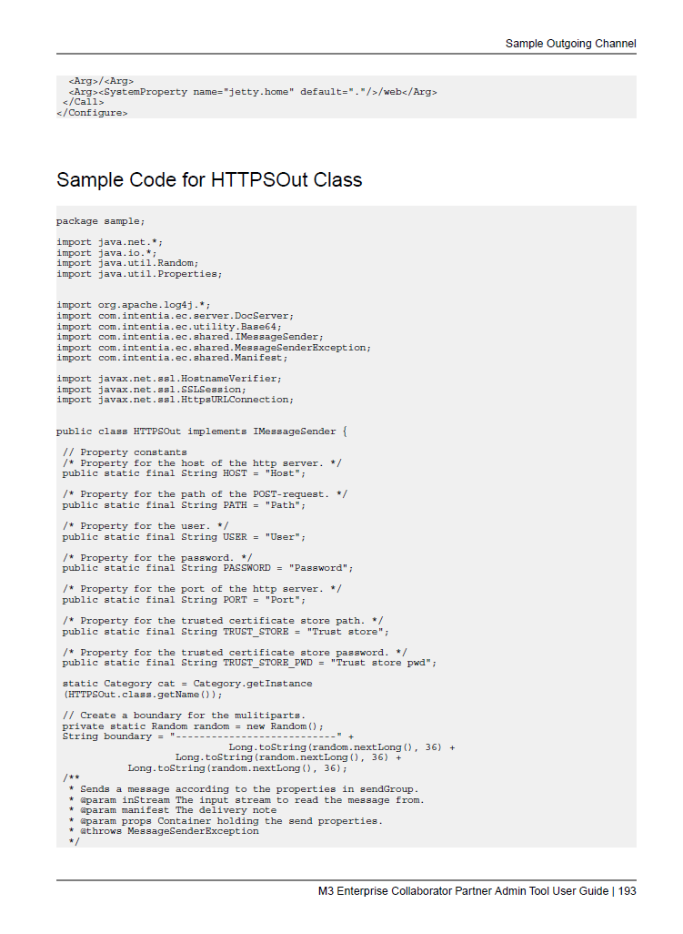 2. UPDATE: Unless you have specific requirements to use non-blocking I/O with java.nio (unusual; needed mostly for gigabyte file transfers), for sending HTTPS from MEC, I would use the Web Service process which despite its name is not SOAP exclusive but byte-based and can send anything such as XML, text, etc. That’s built-in MEC. I wouldn’t mess with the HTTPSOut above. See this post for more details https://m3ideas.org/2016/08/10/calling-soap-web-services-from-mec/