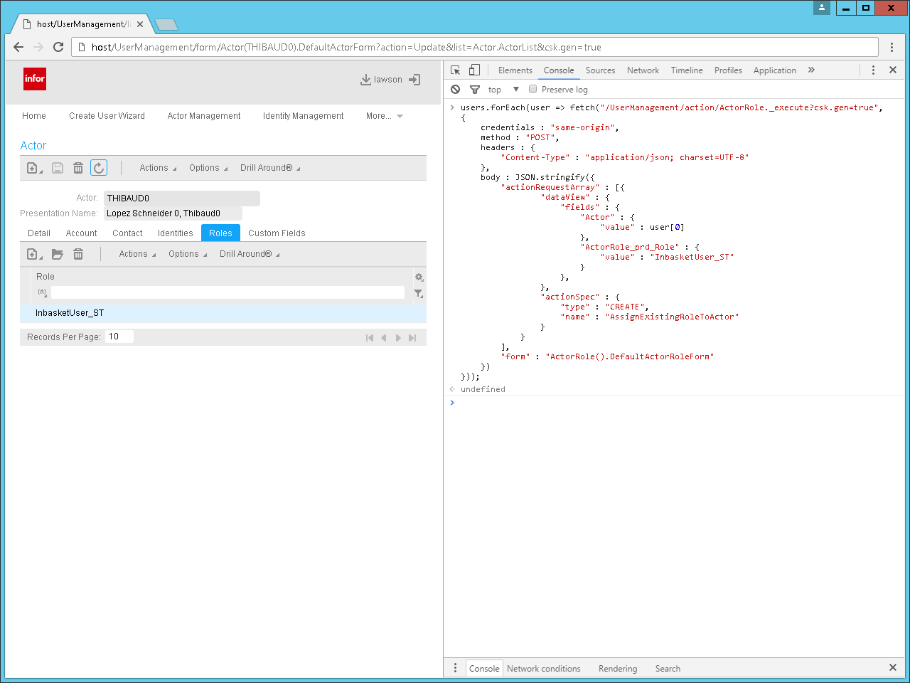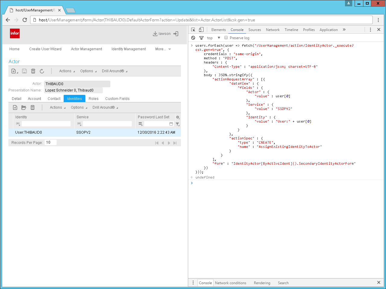 The IPA web admin tools are located at http://host/UserManagement/home?csk.gen=true for the gen data area, to create the Identities, Actors, Actor-Identity, and Actor-Roles; and at http://host/lmprdlpa/LpaAdmin for the environment data area – PRD in my case – to create the Users, Tasks, and User-Tasks. It is the same as the IPA Rich Client Admin but web-based instead of Java GUI based.