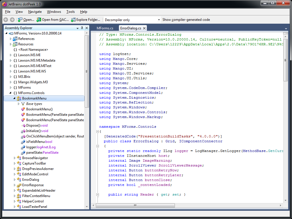 The Standard $35 version is enough for my needs. You will get the most value if you load the DLLs from Smart Office. The folder that contains the DLLs can be found with Smart Office > Help > About Lawson Smart Office > View log file. Then you have to go up and down the folder structure to find all the DLLs, or do a Search. The folder names have an ID that’s different on each Smart Office installation. On my laptop the paths are: