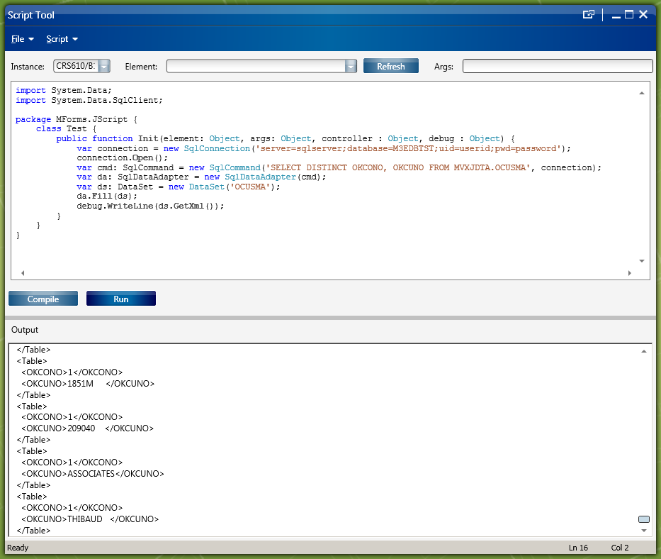Here is a screenshot of a compiled Smart Office Script in C#: