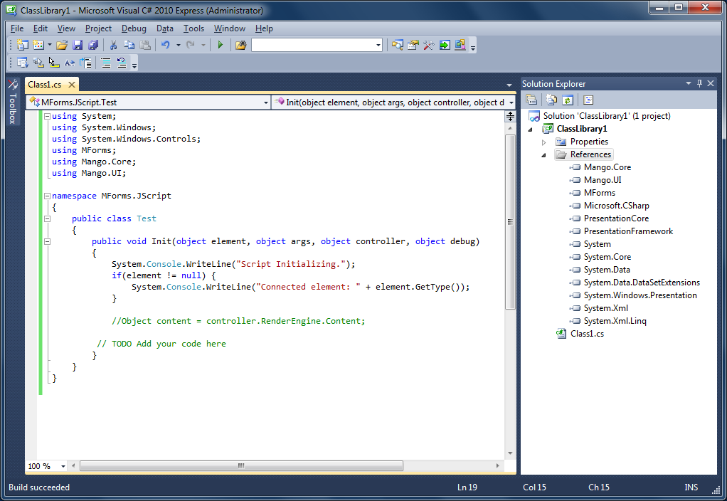 Also, you can compile Smart Office Scripts from the command line if you reference the Smart Office DLL paths (see the .NET Reflector chapter above). They won’t always execute correctly as they will be missing the dynamic context of Smart Office.