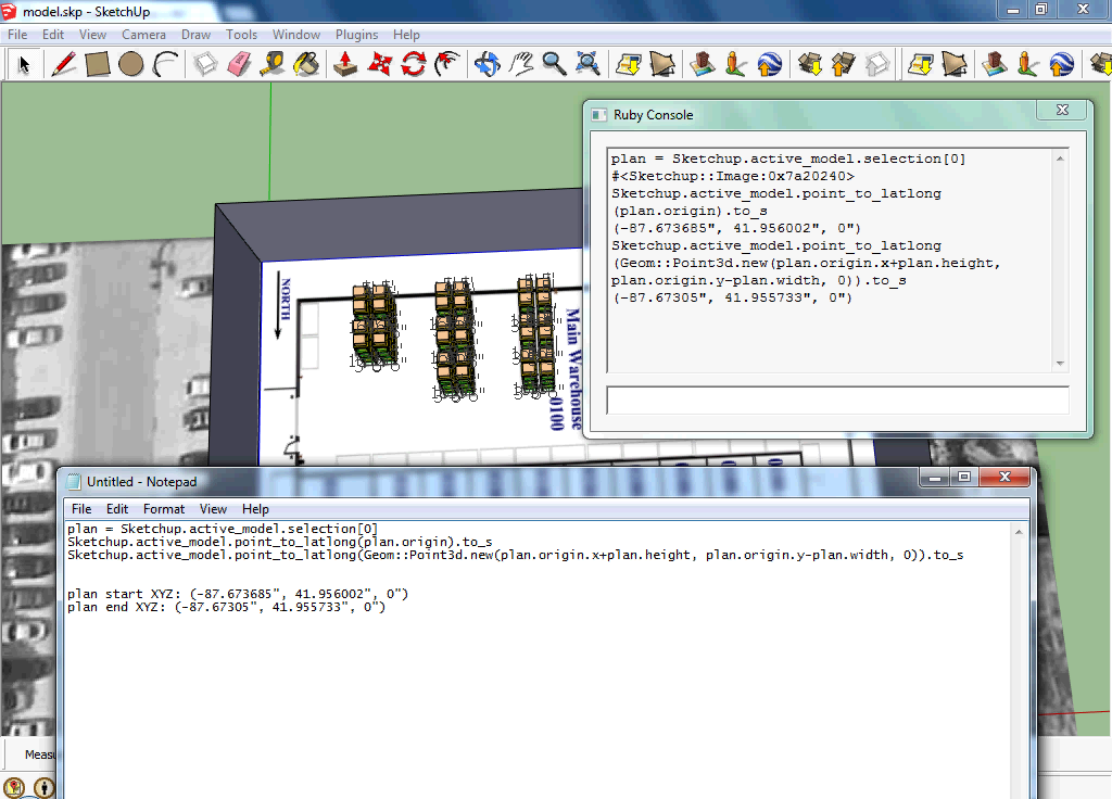 I used this SketchUp model of a 3D warehouse that I had previously geo-located: