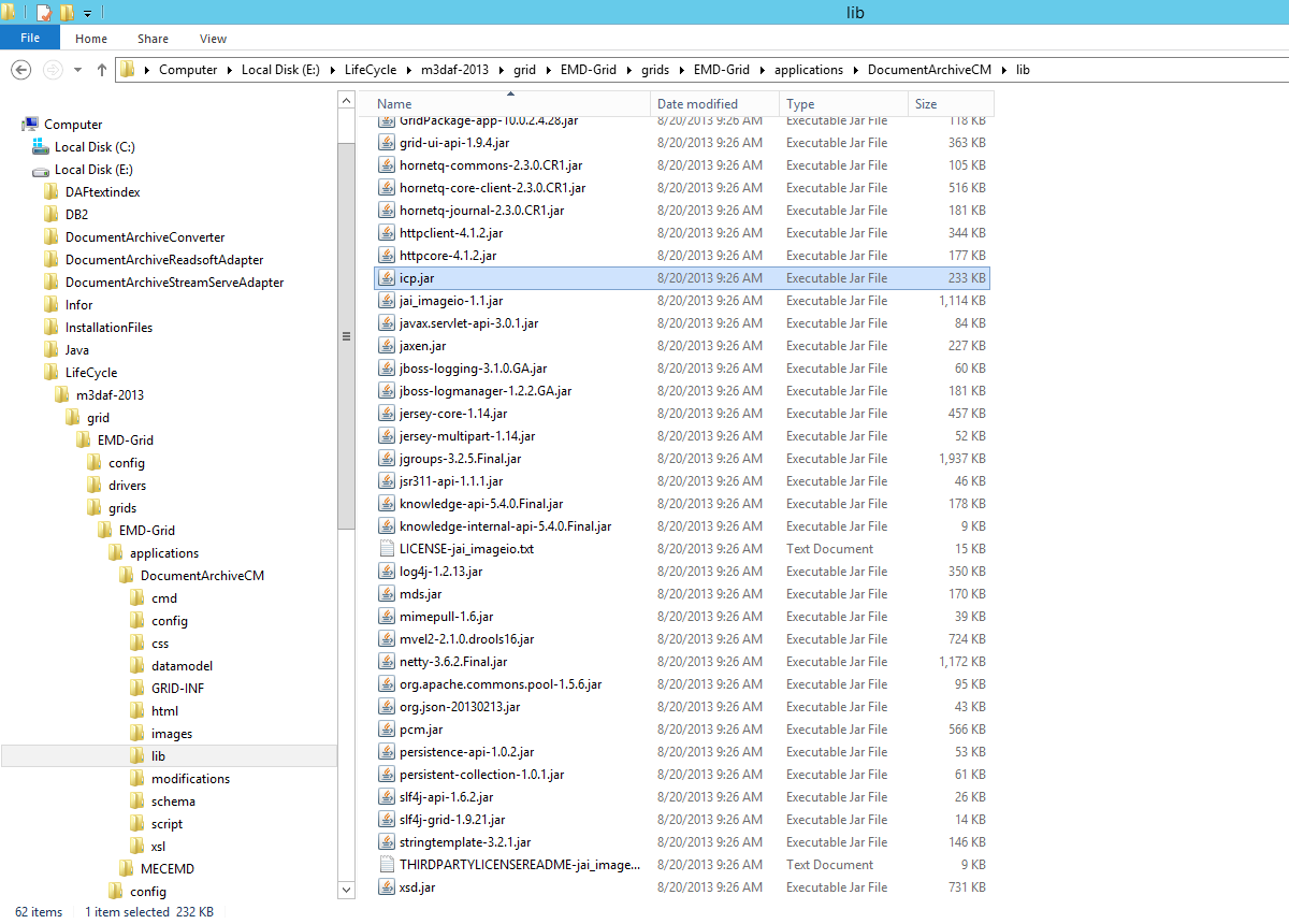 Some .jar are required to read the IDM database and to merge the .pdf files. We already have icp.jar at our disposal.