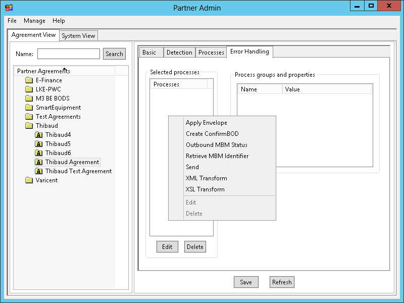 Note: MEC is not collaborative for developers, so if two developers are working on the same agreement in MEC Partner Admin (e.g. one maintaining the XML Transform, the other maintaining the XSL Transform) then the agreement will be corrupted.