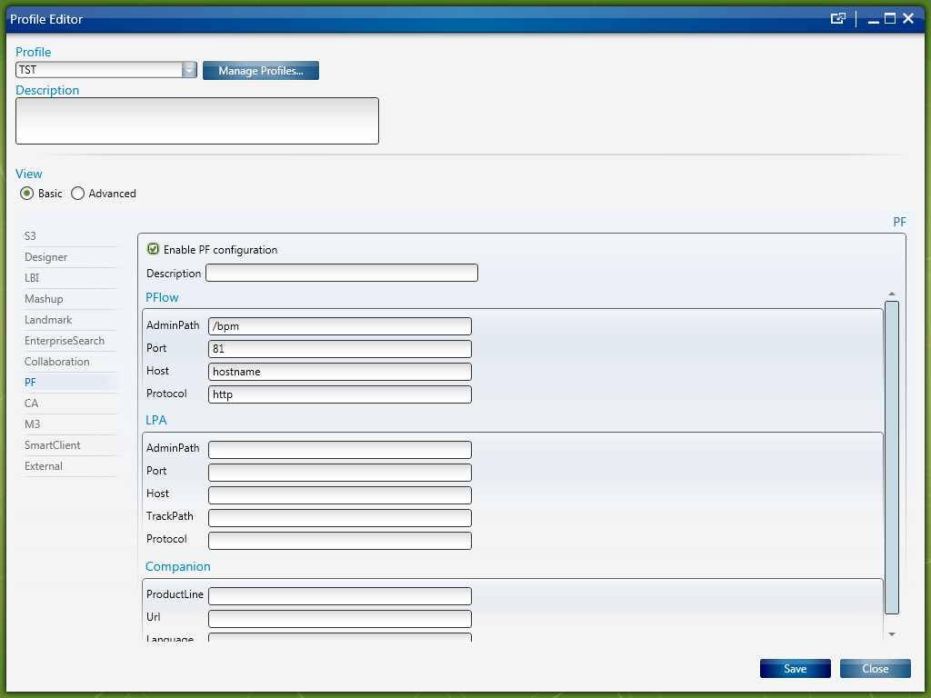 First, enable the PF configuration in the Smart Office Profile Editor: