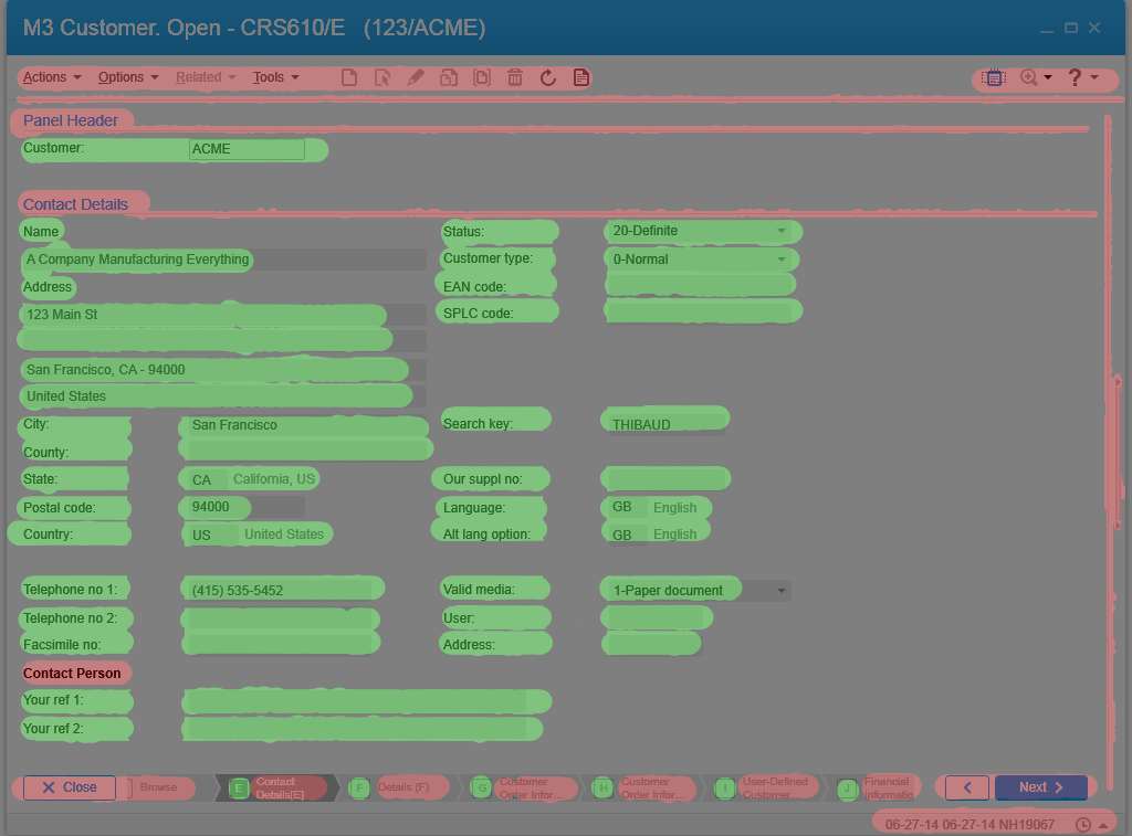 The M3 user interface was built over 20 years ago for AS/400 and 5250 screens of 73 up to 98 columns and 23 rows, that’s about 0.0022 Mega-characters. The M3 user interface has evolved over the years and has stabilized in Smart Office around the same number of columns and rows as 20 years ago with each cell measuring 10 x 22 pixels at 100% zoom level, that’s about 0.5 Megapixels. It’s about the same for Infor H5 Client.