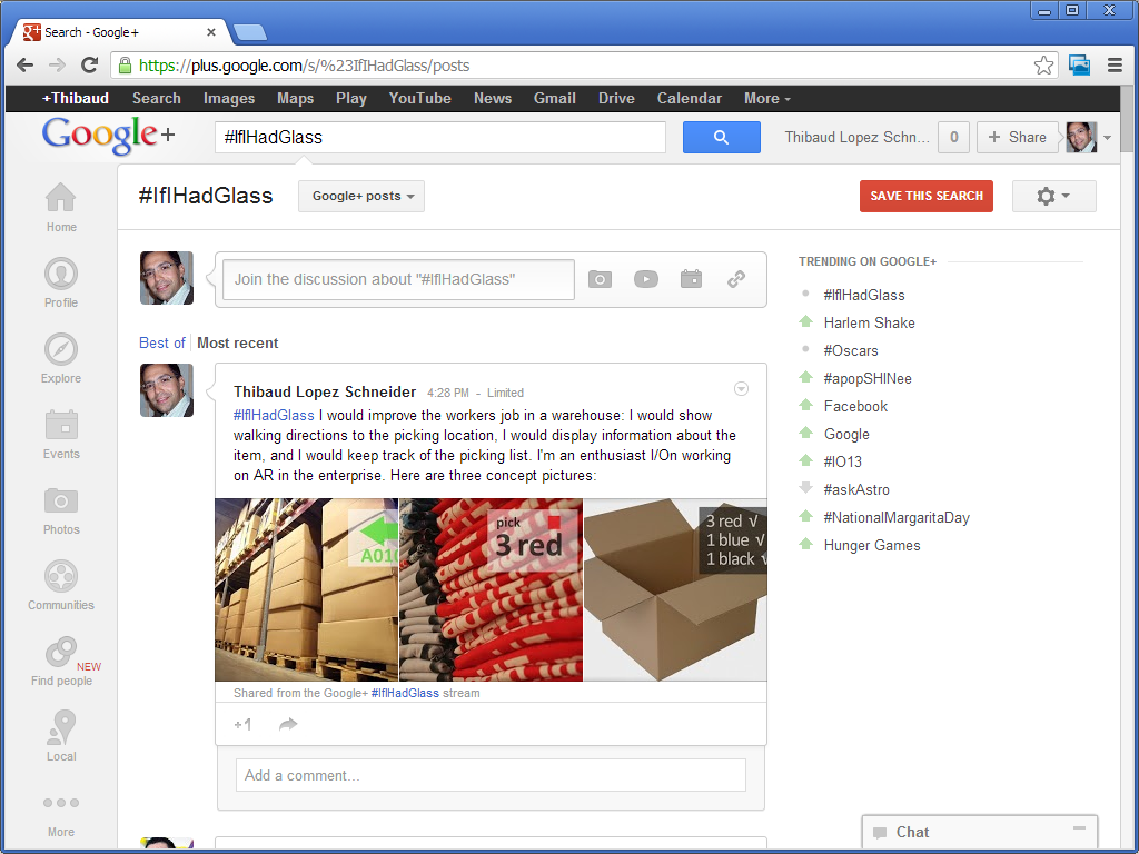 This is a great demo of the integration capabilities of the Infor Grid. I worked a little bit here and there on evenings and week-ends over several months, and I distilled the resulting steps here and in a 15mn video so you can play along. You will need a pair of Google Glass.