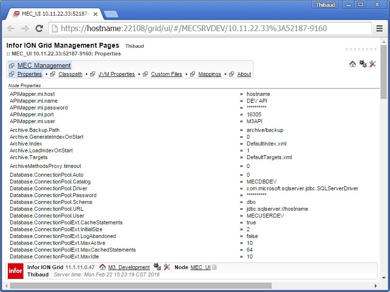 SELECT PropValue FROM PR_Basic_Property WHERE PropKey='Password'. I was told it should be fixed in the Infor Cloud branch, and is scheduled to be merged back. - With the proxy (Fiddler in my case), I was only able to intercept a CONNECT request, nothing else; I do not know if that is the intention.
