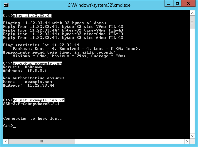 Prior to setting up MEC SFTPOut, we have to ensure our MEC host can connect to the SFTP server. In my case, I am connecting to example.com [11.22.33.44], on default port 22, with userid mecuser, and path /outbound. Contact the SFTP server administrator to get the values, and eventually contact the networking team to adjust firewall rules, name servers, etc.