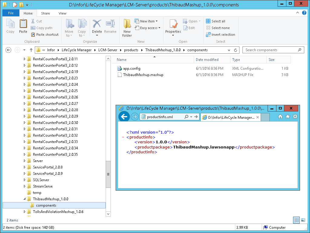 The previous methods eventually create a .lawsonapp file which is a ZIP archive of the .mashup file and an app.config file: