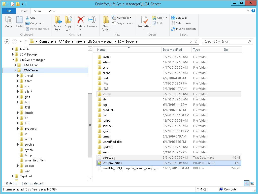 The JDBC connection parameters are in the file lcm.properties at D:\Infor\LifeCycle Manager\LCM-Server\ :