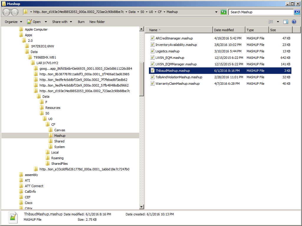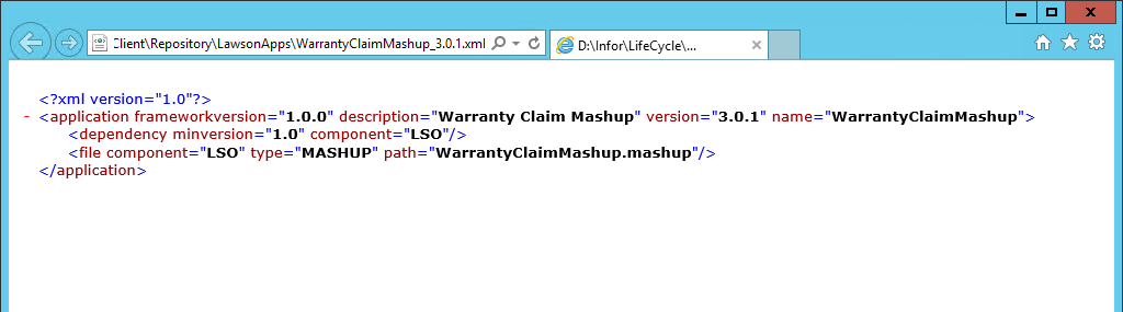 Then there is this repository in the MangoServer grid application with more metadata about the Mashups: D:\Infor\LifeCycle\host\grid\DEV\grids\DEV\applications\MangoServer\Client\Repository\LawsonApps\ :
