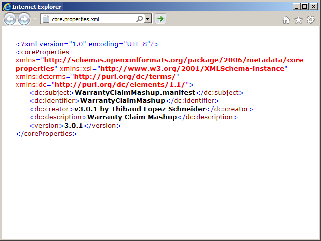 The Mashup file is itself another ZIP archive of metadata files, the manifest, the XAML source code, and optional profile and resource files: