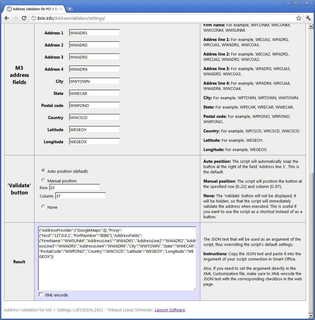 Here is part of the source code of my self-configuration script for address validation: