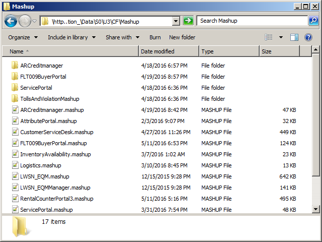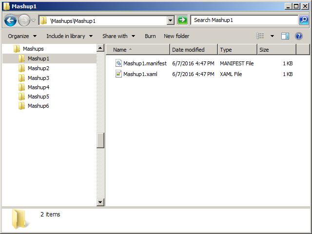 Here is the resulting list of files: *.mashup, *.xaml, *.png, etc.: