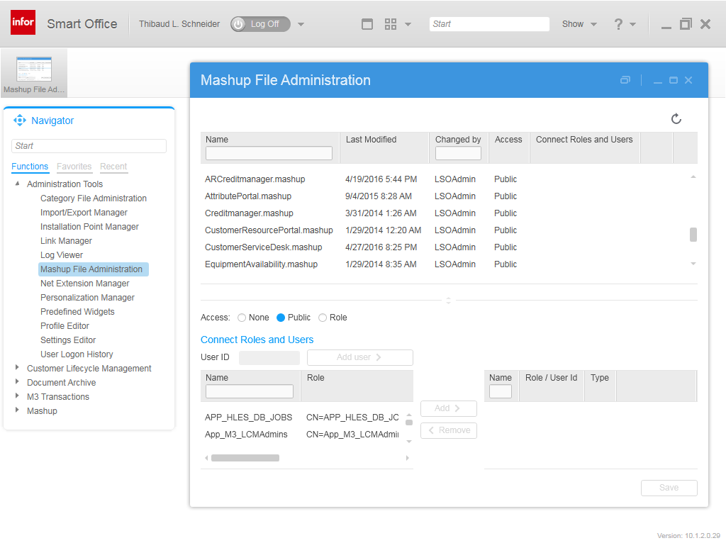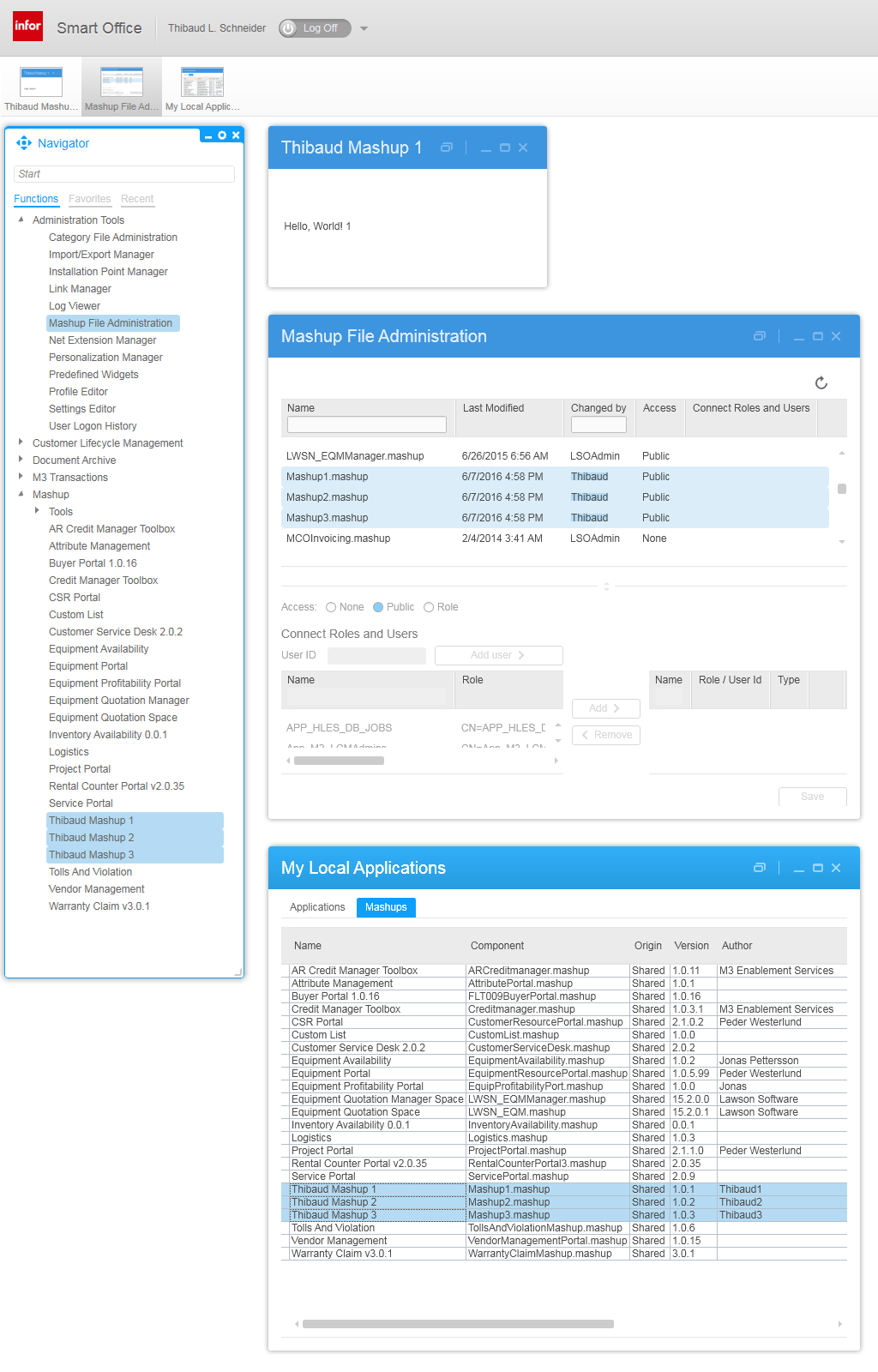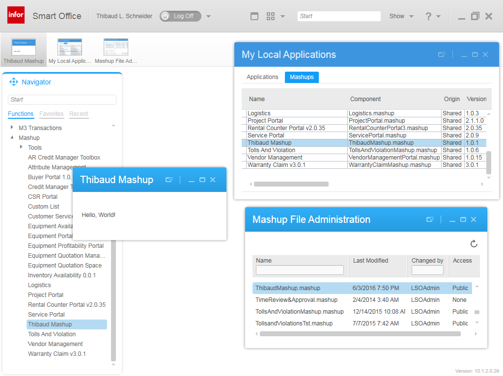 I am attempting to develop a quality control tool for Infor Smart Office Mashups. In my original post I was using Python. This time I will use the Smart Office API to get the list of Mashups.