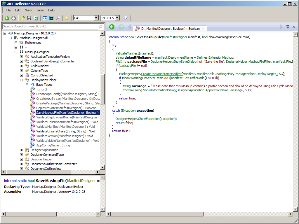 • Explore the UriHelper.CreateMashupUri, Package.Open, Package.GetParts, PackageHelper.GetStream, MashupInstance.CreateInstance, MashupInstance.Load, MashupNameScope, etc.