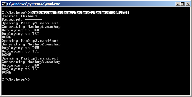 Reminder: To deploy a shared Mashup, use LifeCycle Manager > Admin > Upload Products > Upload; to deploy a Mashup privately, use Mashup Designer > Deploy > Private; and to deploy a Mashup locally, use Smart Office > Show > My Local Applications > Install.